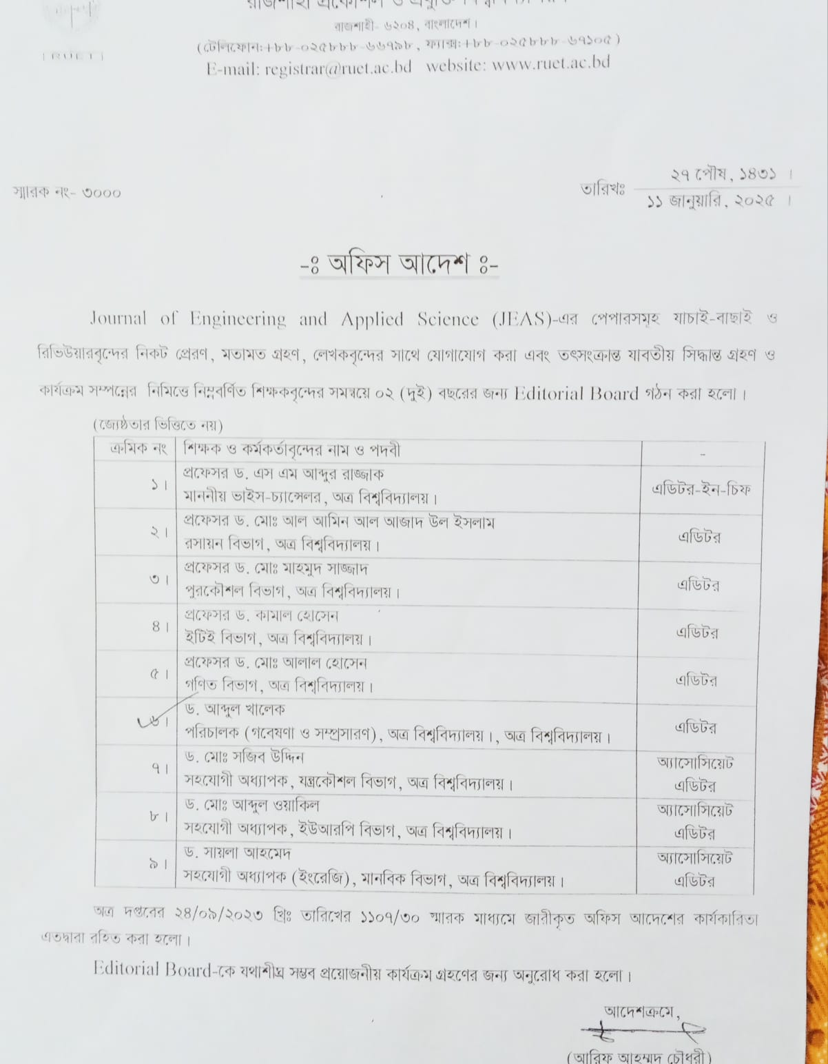 Eligible Candidates List of RUET Admission Test (Session: 2025-26) is published.
