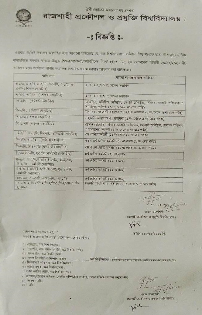 Notice regarding station leave during RUET admission (Session: 2025-26)